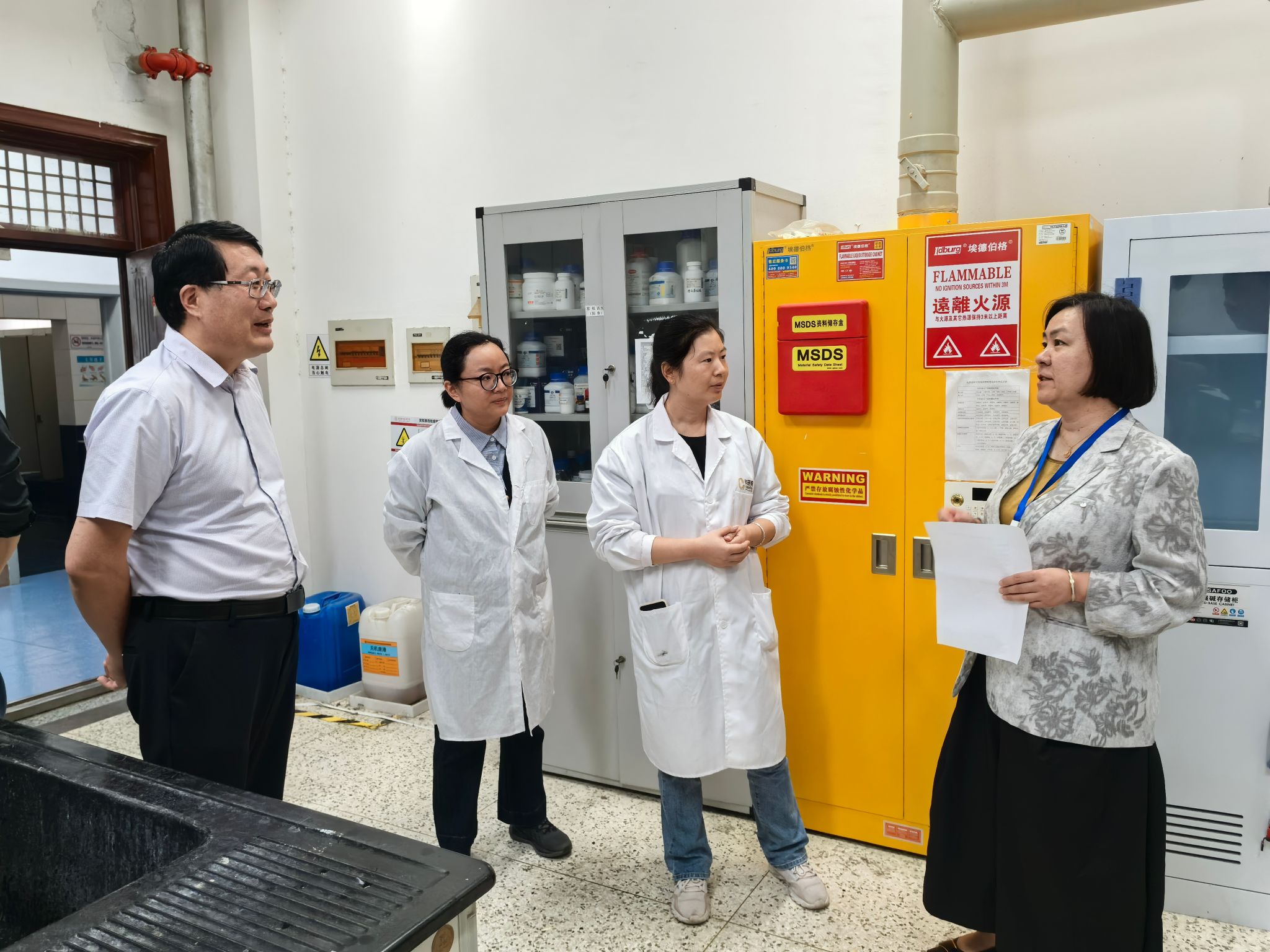 检查组严格依据《高等学校实验室安全检查项目表(2025)》及学校安全管理要求,在各学院自查自纠的基础上,重点围绕危化品管理、特种设备、用电安全、消防安全等方面开展细致核查,同时详细询问了双节期间实验室安全值班值守安排、新生实验室安全教育培训等方面工作。